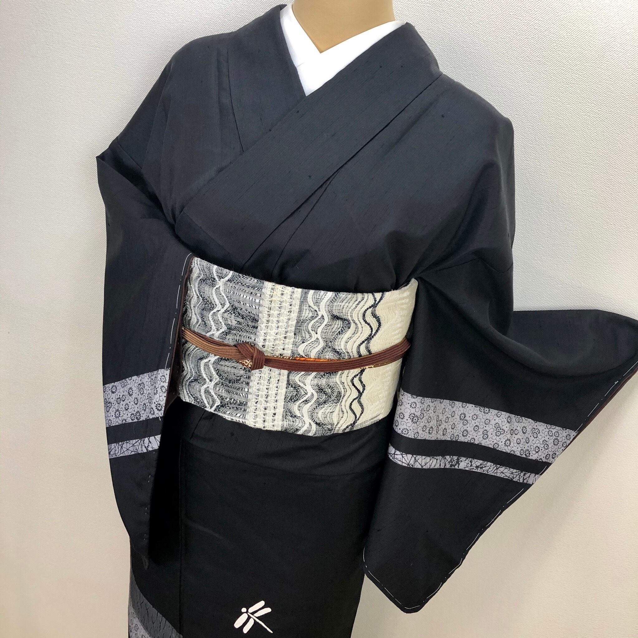 黒地にトンボがあしられた上質な赤城紬の訪問着です。