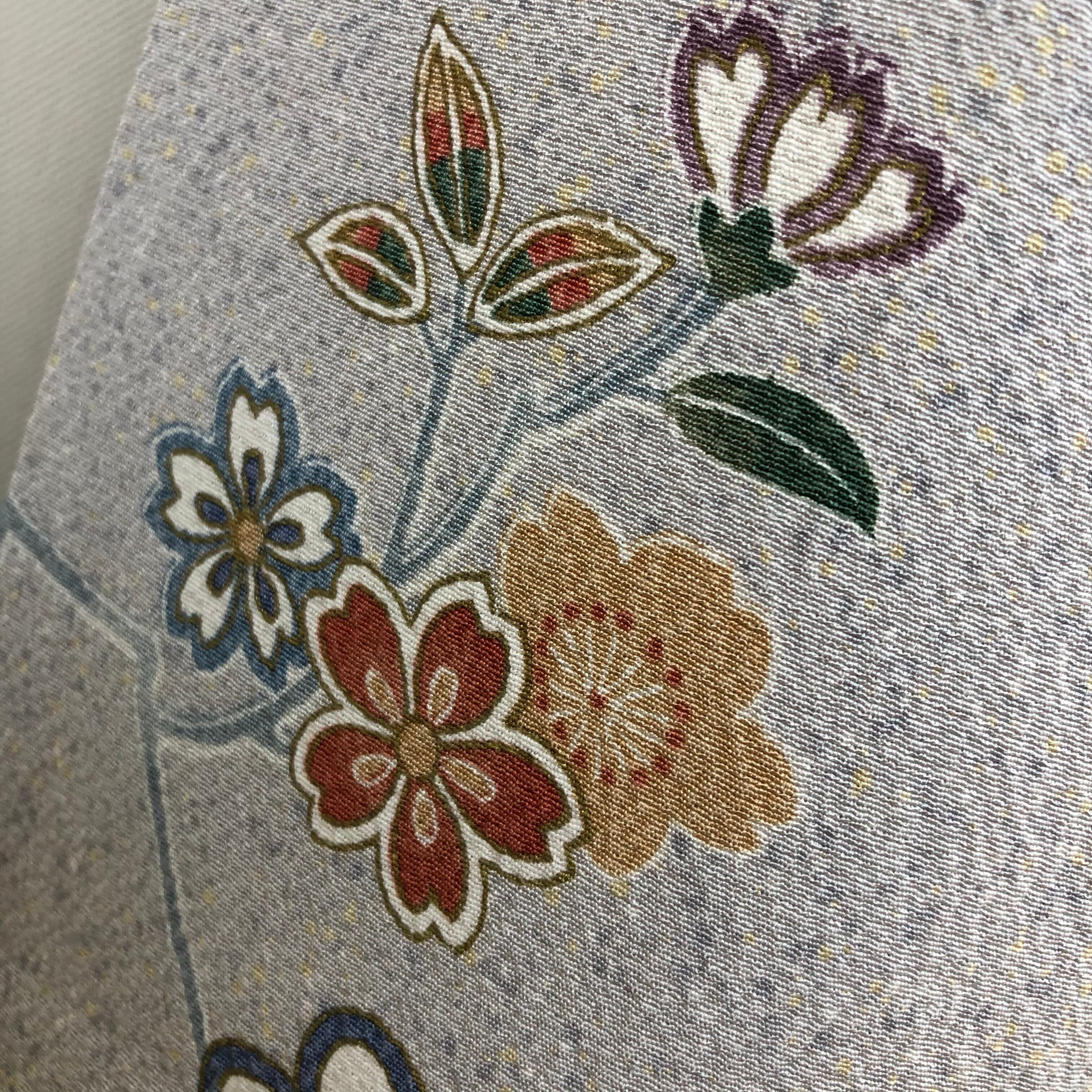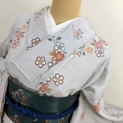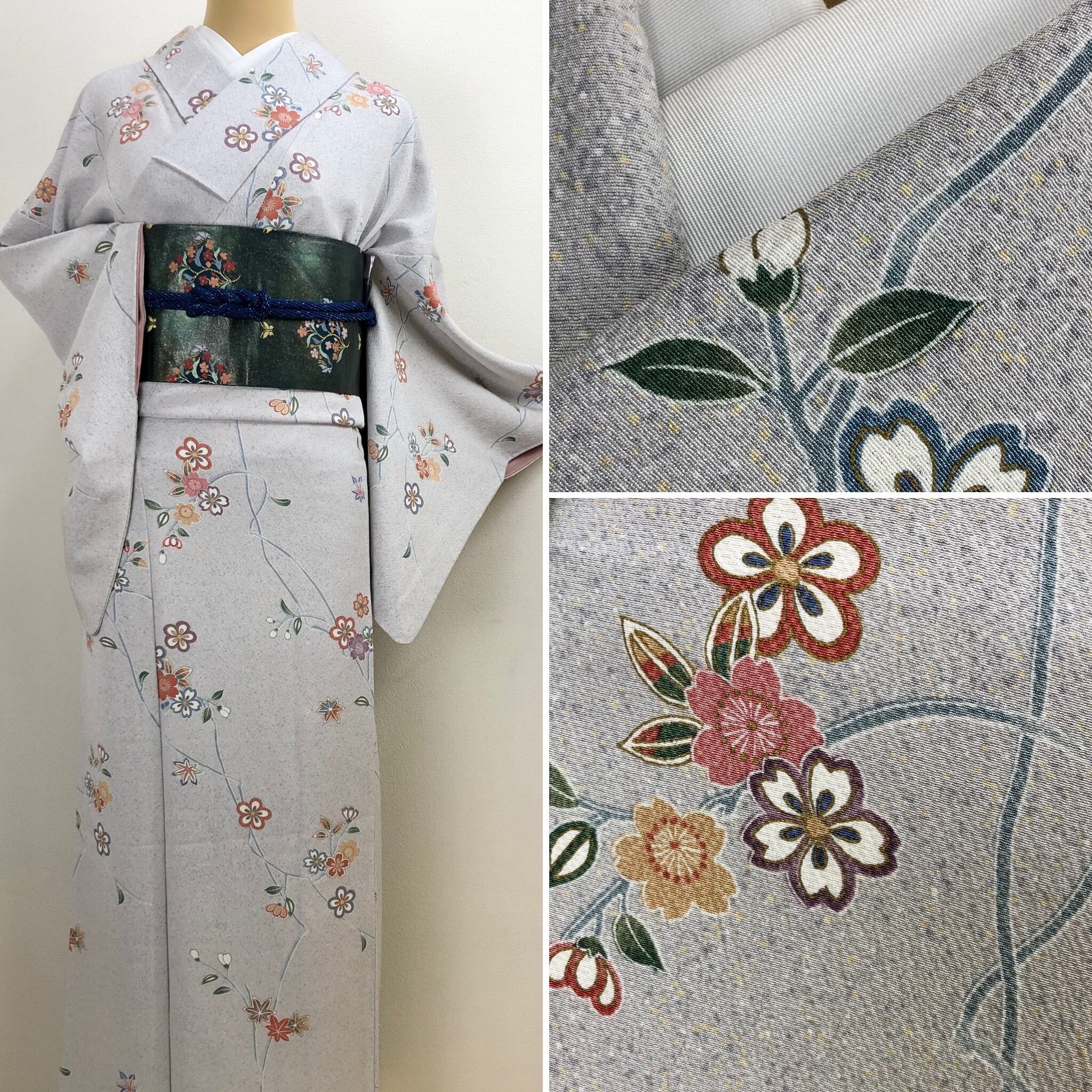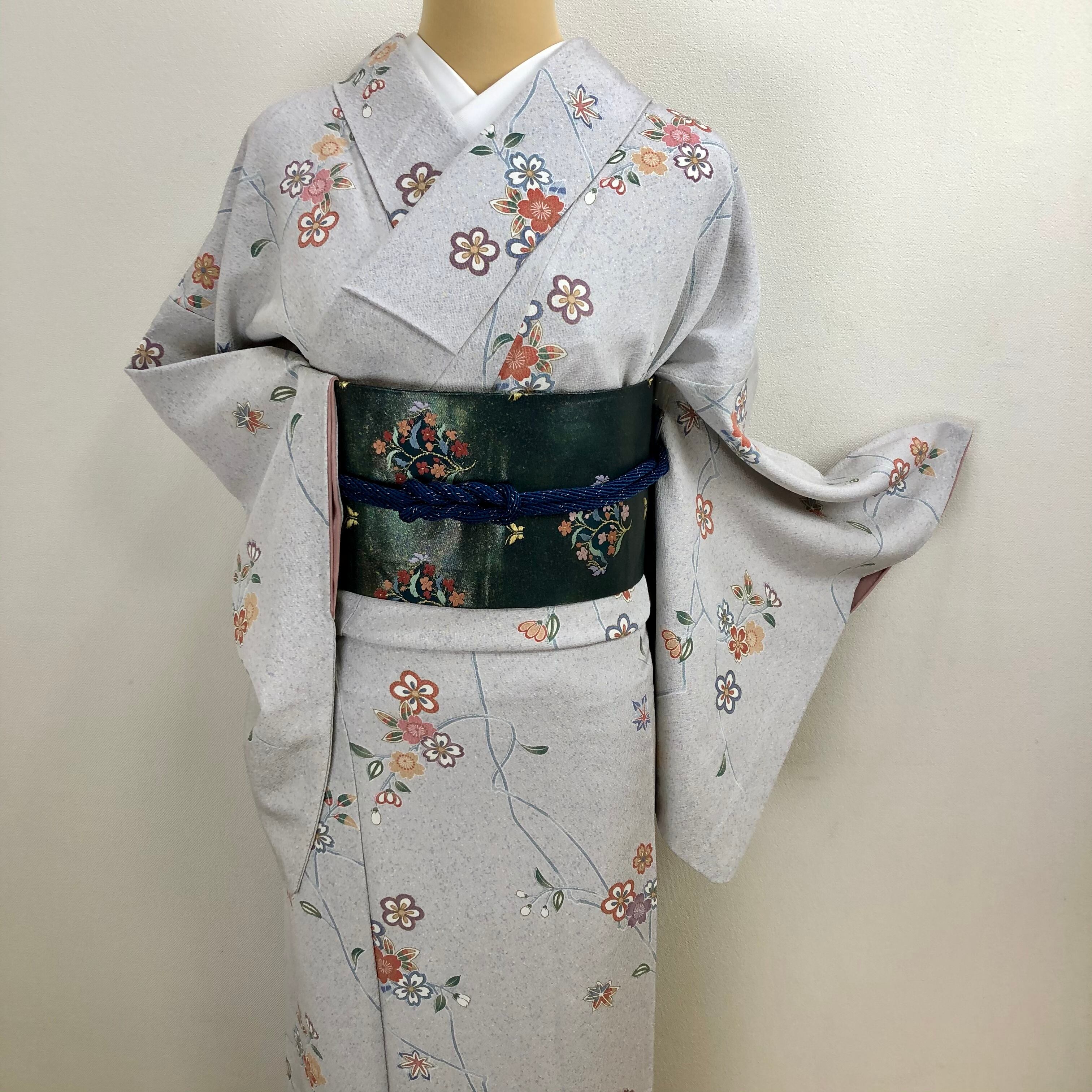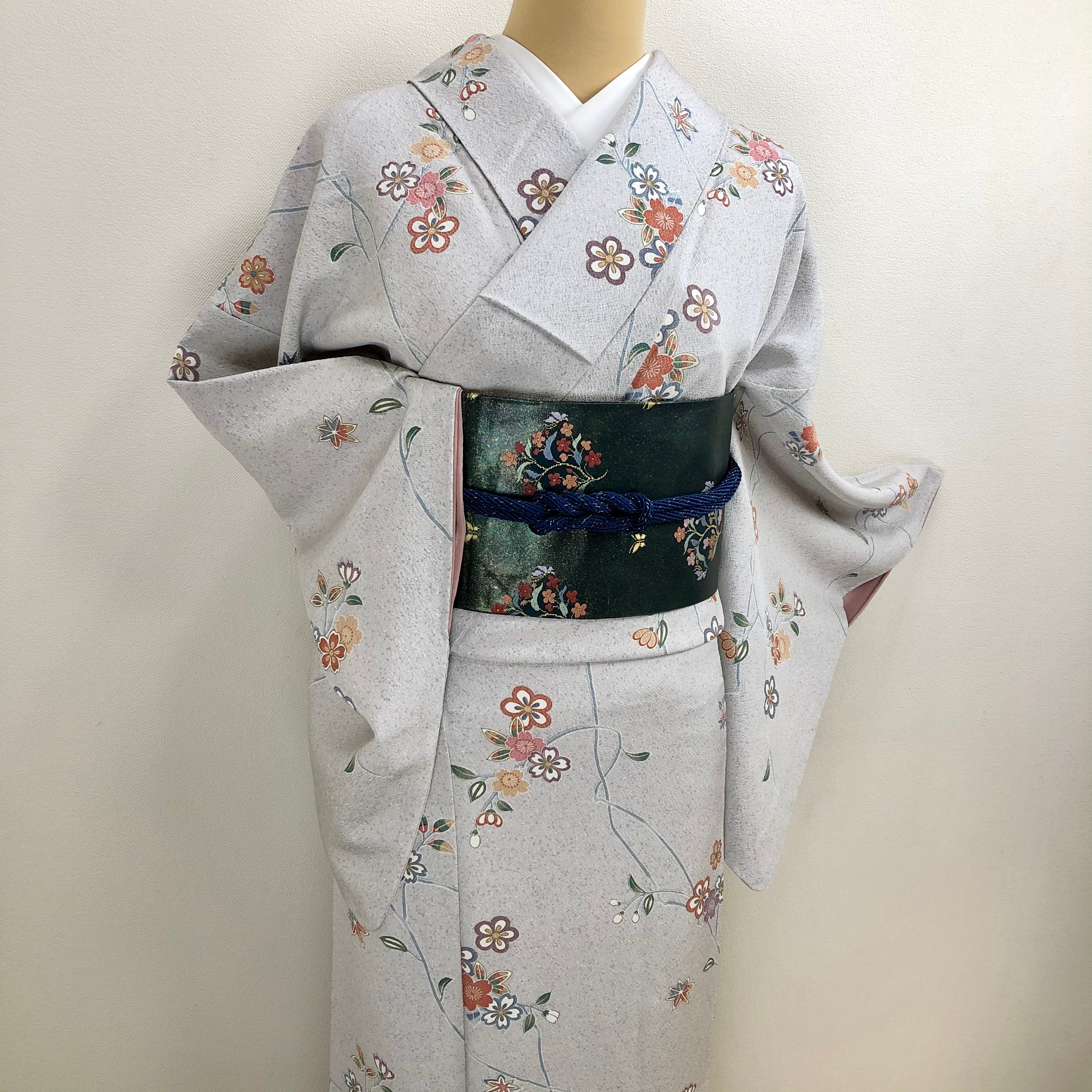 四季の花々があしらわれた可愛らしく上品なお着物です。