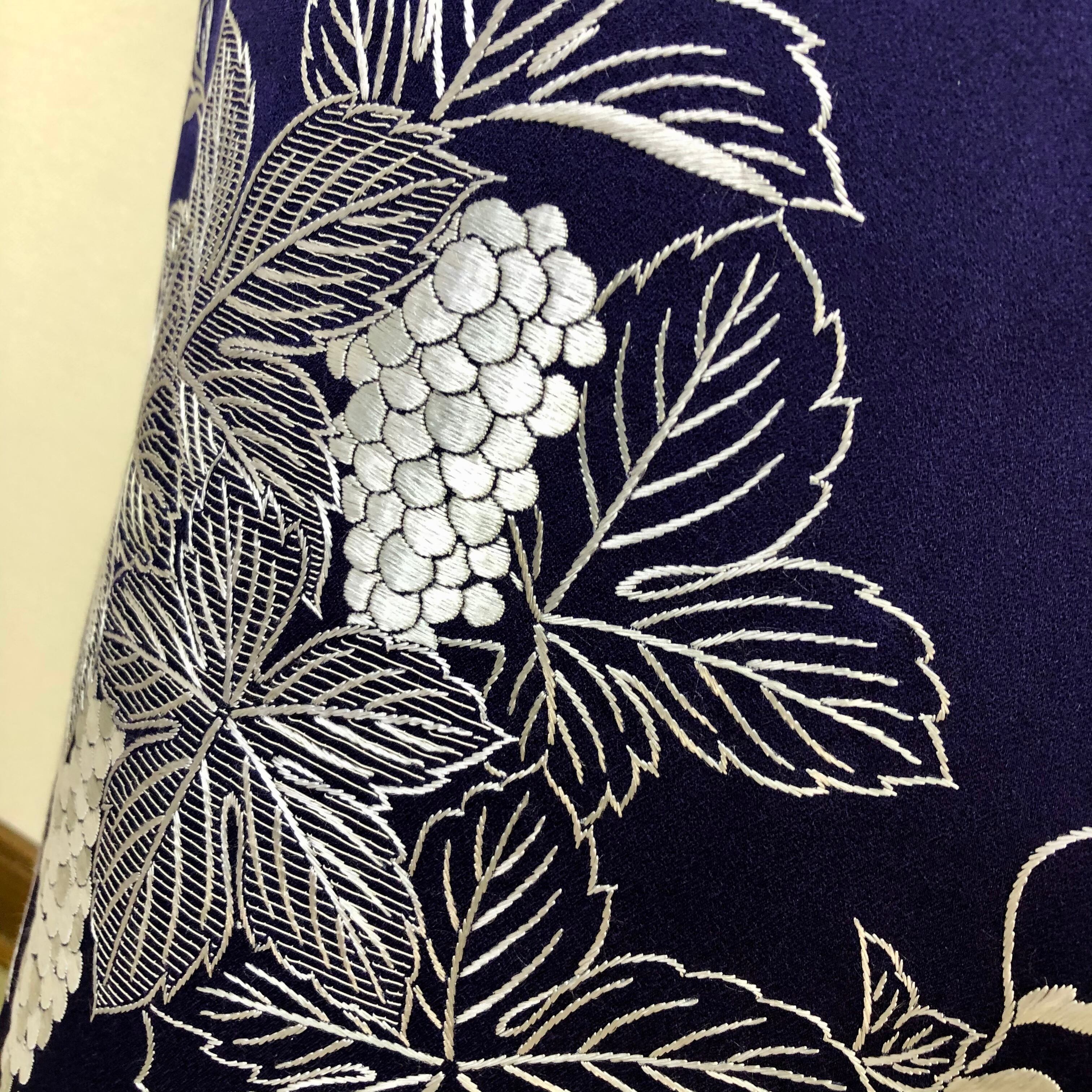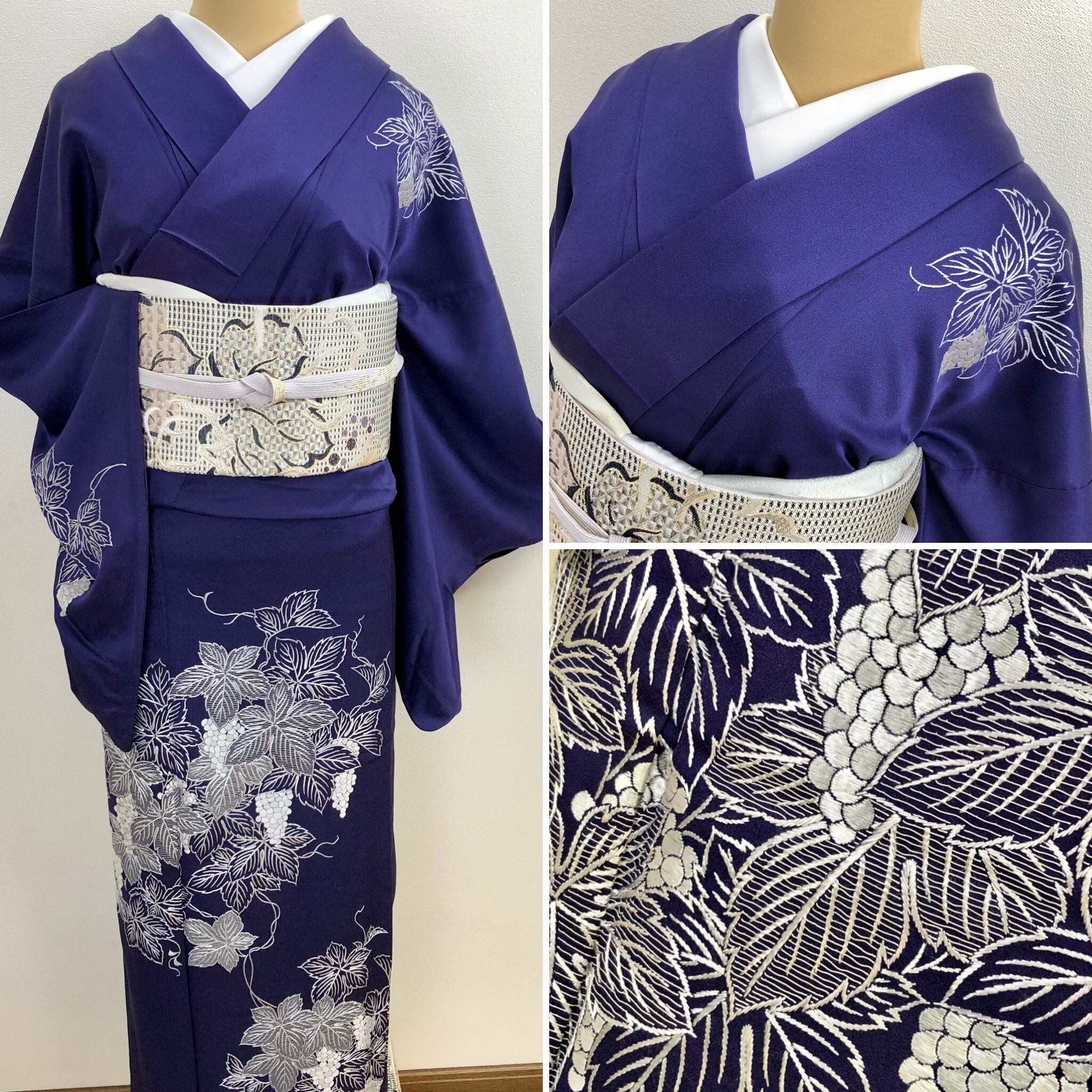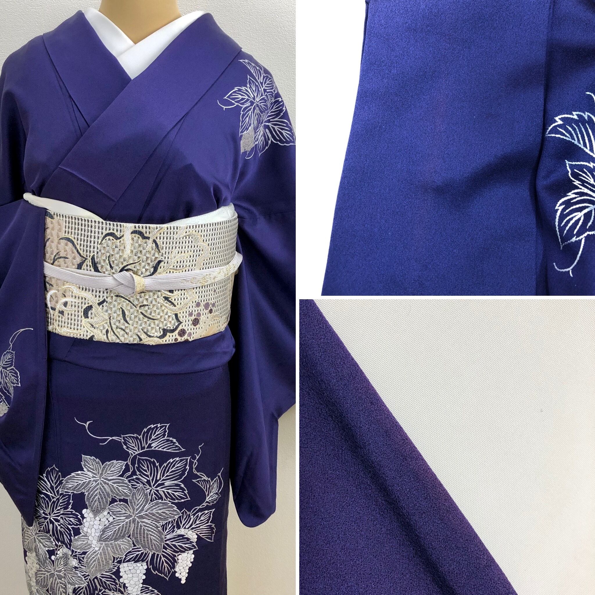 ♦︎鉄紺系のお色目に葡萄の総刺繍があしらわれた美しくエレガントな訪問着です。