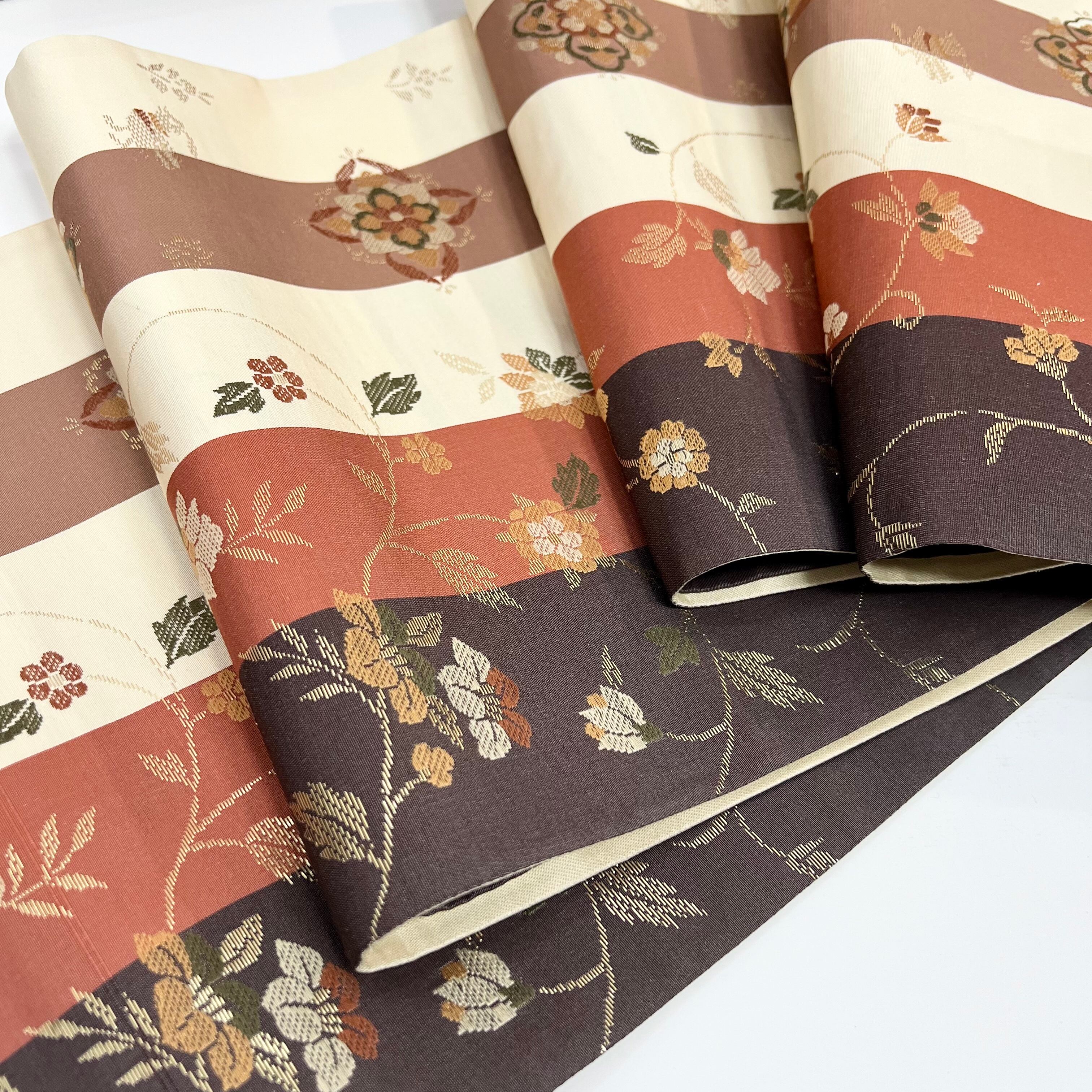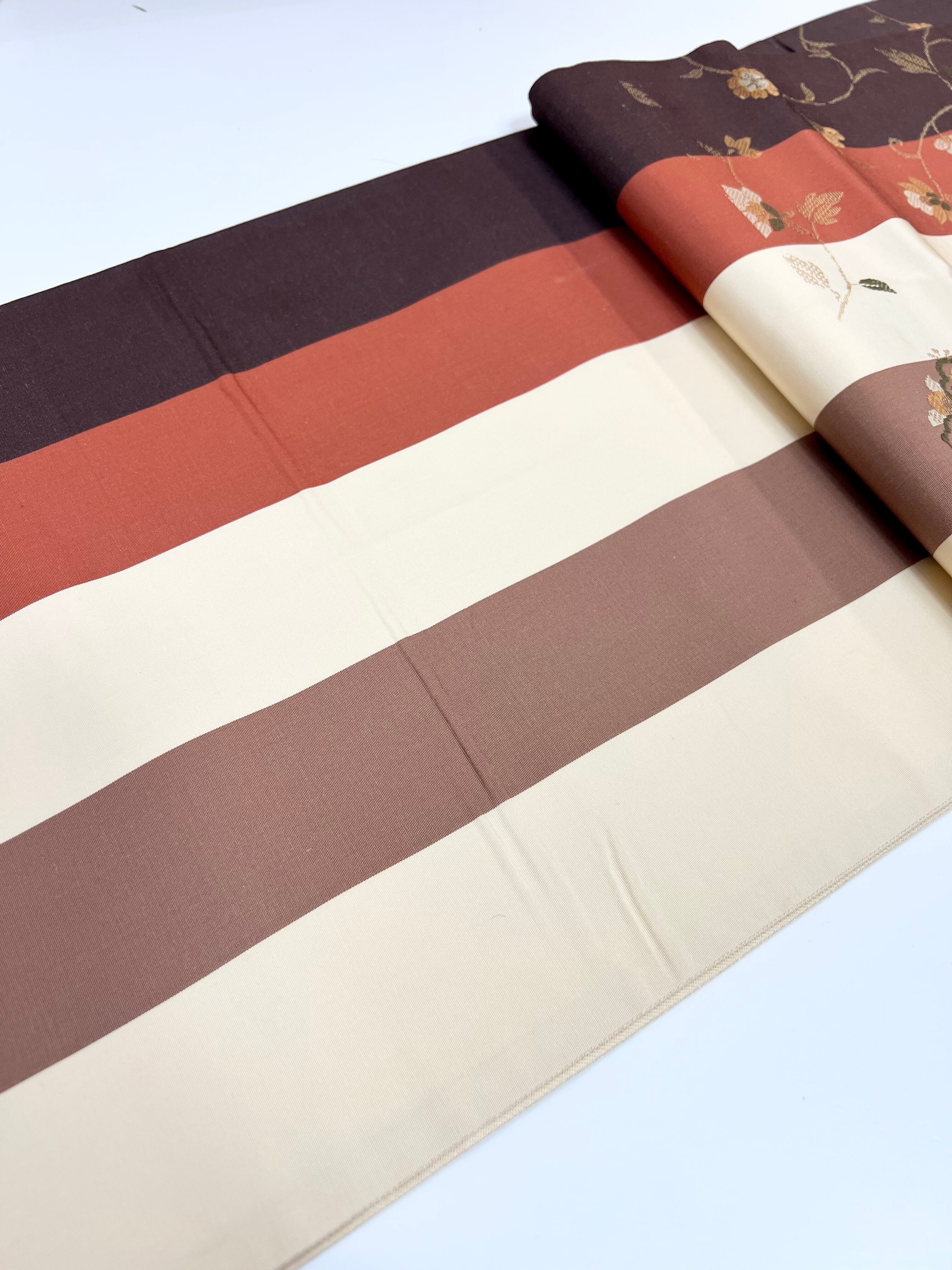 ◆縦縞に花唐草織り出しので美しい袋帯です。