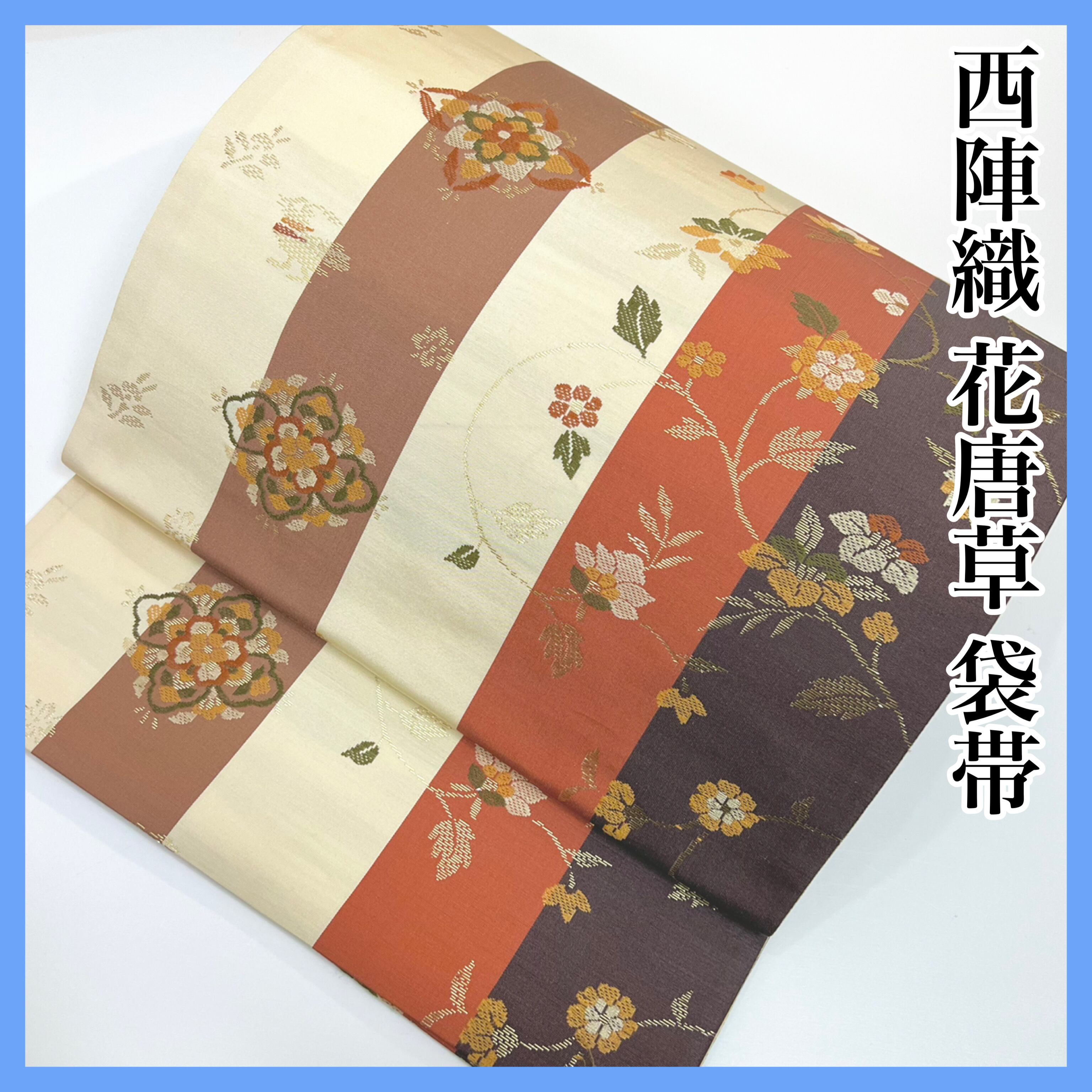 美品【花唐草 】西陣織 袋帯 正絹 s422