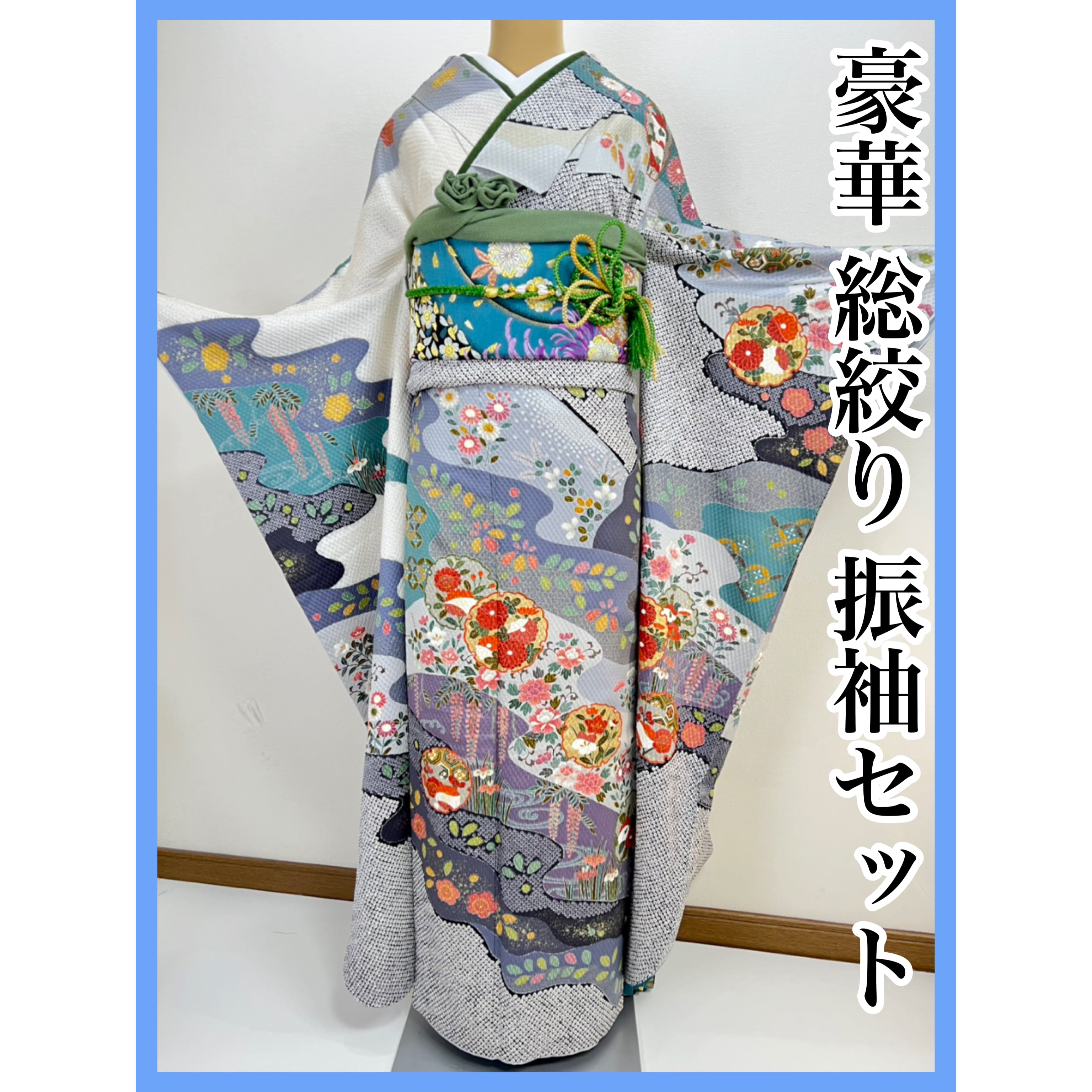 豪華【総絞り】正絹 総柄 振袖セット s452